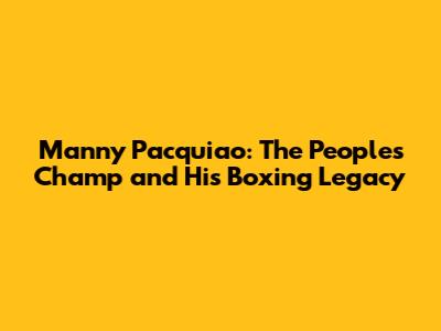 Manny Pacquiao: The People's Champ And His Boxing Legacy